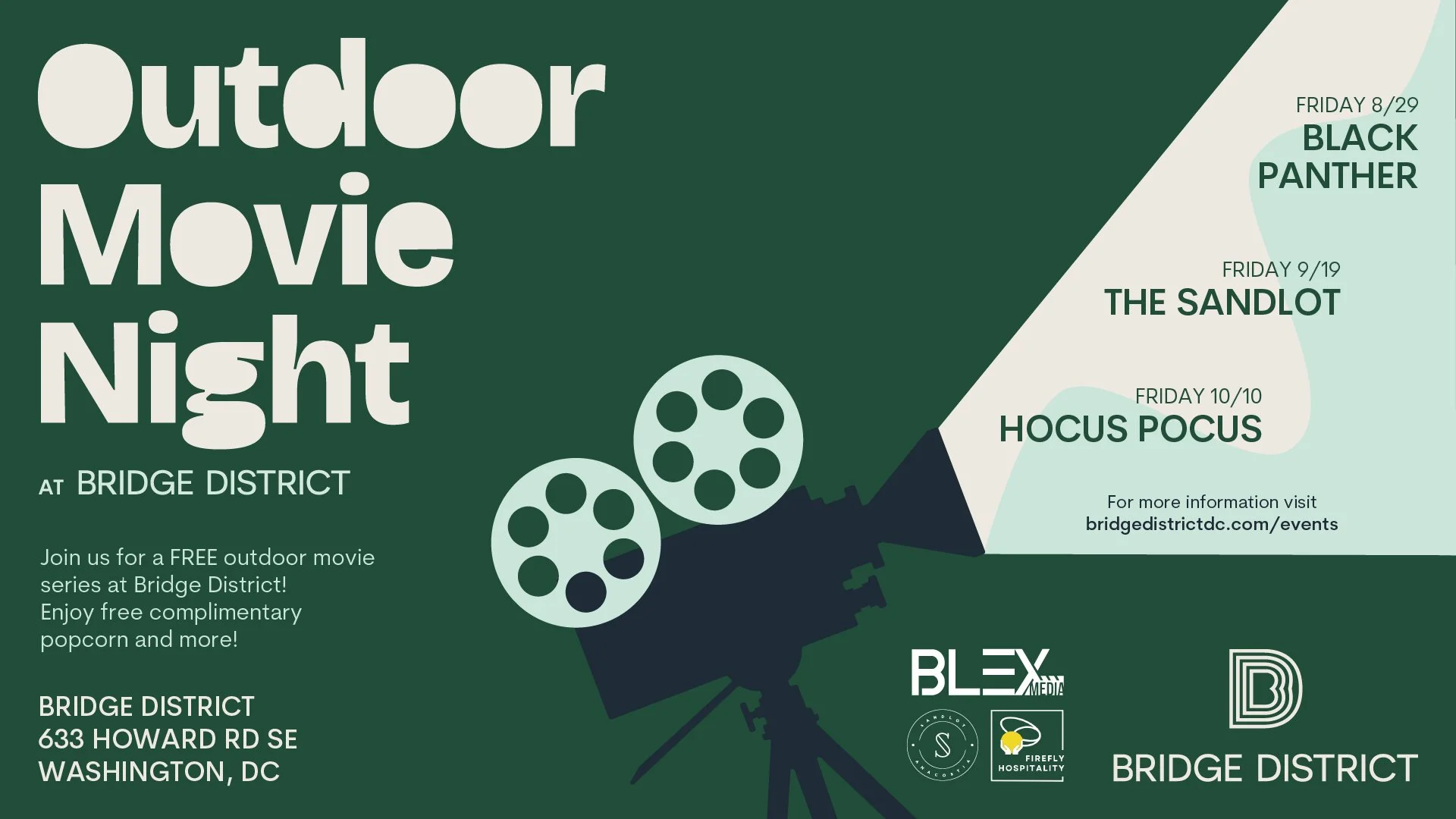 Deets: Bridge District, D.C.’s newest riverfront community blending nature and culture, invites the community to its free, fall outdoor movie series along the waterfront. In partnership with Firefly Hospitality, BLEX Media and Sandlot Anacostia, guests can bring picnic blankets and lawn chairs to get cozy in front of the big screen. Complimentary popcorn will also be served, with local food and drink offerings available for purchase.