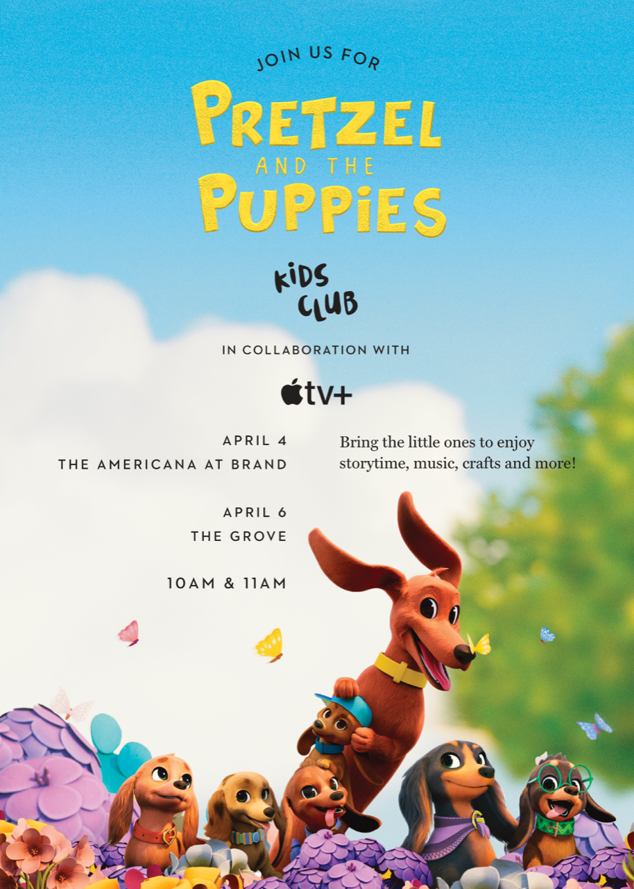 Deets: The “Pretzel and the Puppies” Kids Club takeover event will occur on Tuesday, April 4 at the Americana at Brand; and on Thursday, April 6 at the Grove. Taking place at 10am and 11am, attendees can enjoy story time, music, crafts and more!