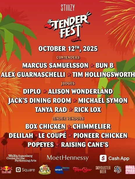 Deets: Join us for Tenderfest 2025 in Beverly Hills. The world's largest chicken tender festival with unlimited food & fun.
