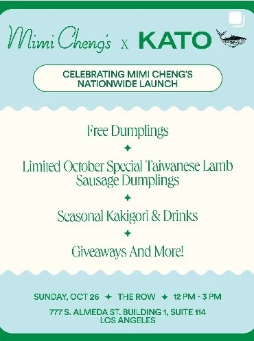 The collaboration will run all month long at Mimi Cheng’s NYC location, and will make a one-day appearance at Kato in Los Angeles on Sunday, October 26, 2025, where guests can also sample Mimi Cheng’s newly launched retail dumplings, alongside special menu items including shaved-ice kakigori and paired drinks.