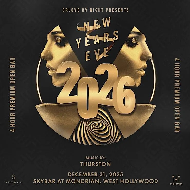 Deets: Ring in 2026 in absolute style as ORLOVE returns to the iconic Skybar at Mondrian for one of Los Angeles’ most glamorous New Year’s Eve celebrations. Set high above the Sunset Strip, Skybar transforms into a shimmering, gold-lit night of elegance, energy, and cutting-edge dance music — the perfect setting to toast to a brand new year.
