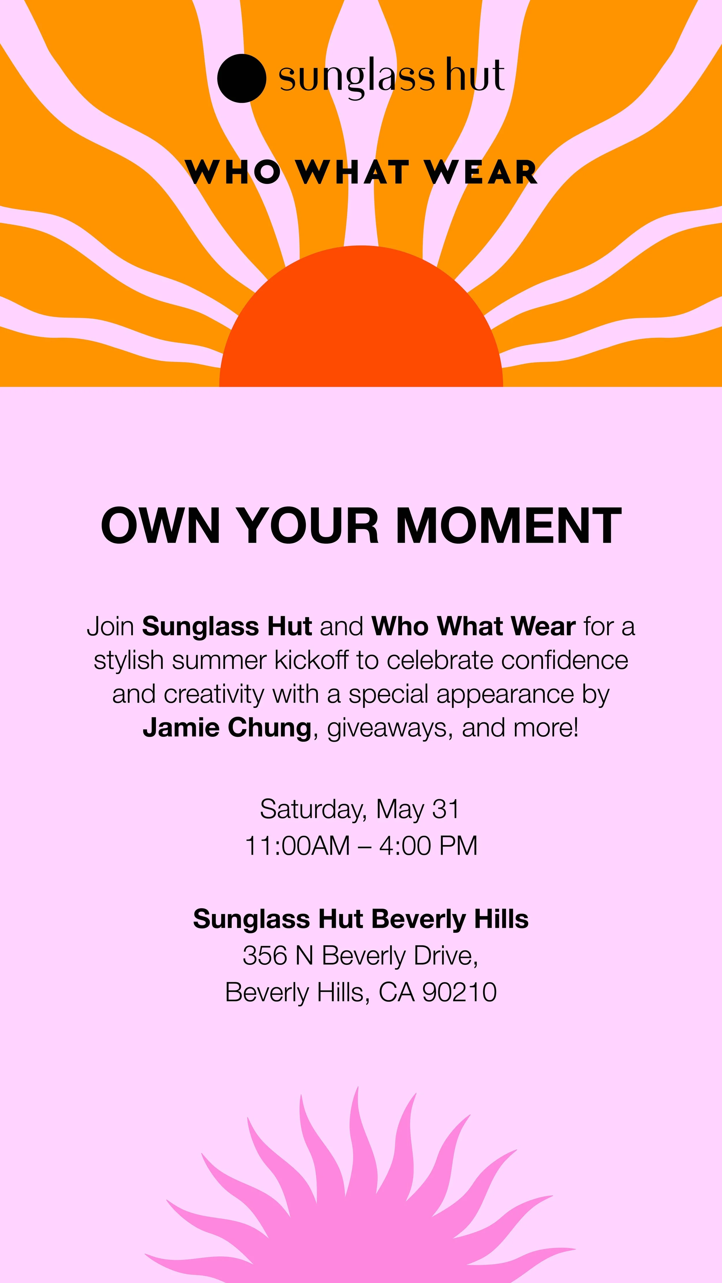 Deets: Join Sunglass Hut and Who What Wear for a stylish summer kickoff to celebrate confidence and creativity with a special appearance by Jamie Chung, giveaways, and more!