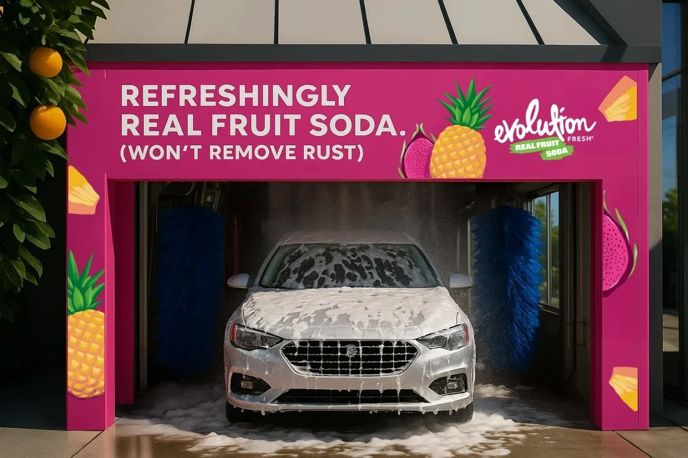 Attendees will get to sip on complimentary Evolution Fresh Real Fruit Soda and get a free car wash featuring a cleaning solution made with phosphoric acid. Additionally, guests can trade in a traditional can of soda to take home a special goodie.