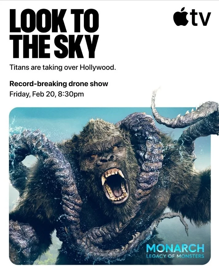 Deets: Kong, Godzilla, and Titan X will take over the Hollywood sky in a record‑breaking drone show for Monarch: Legacy of Monsters.