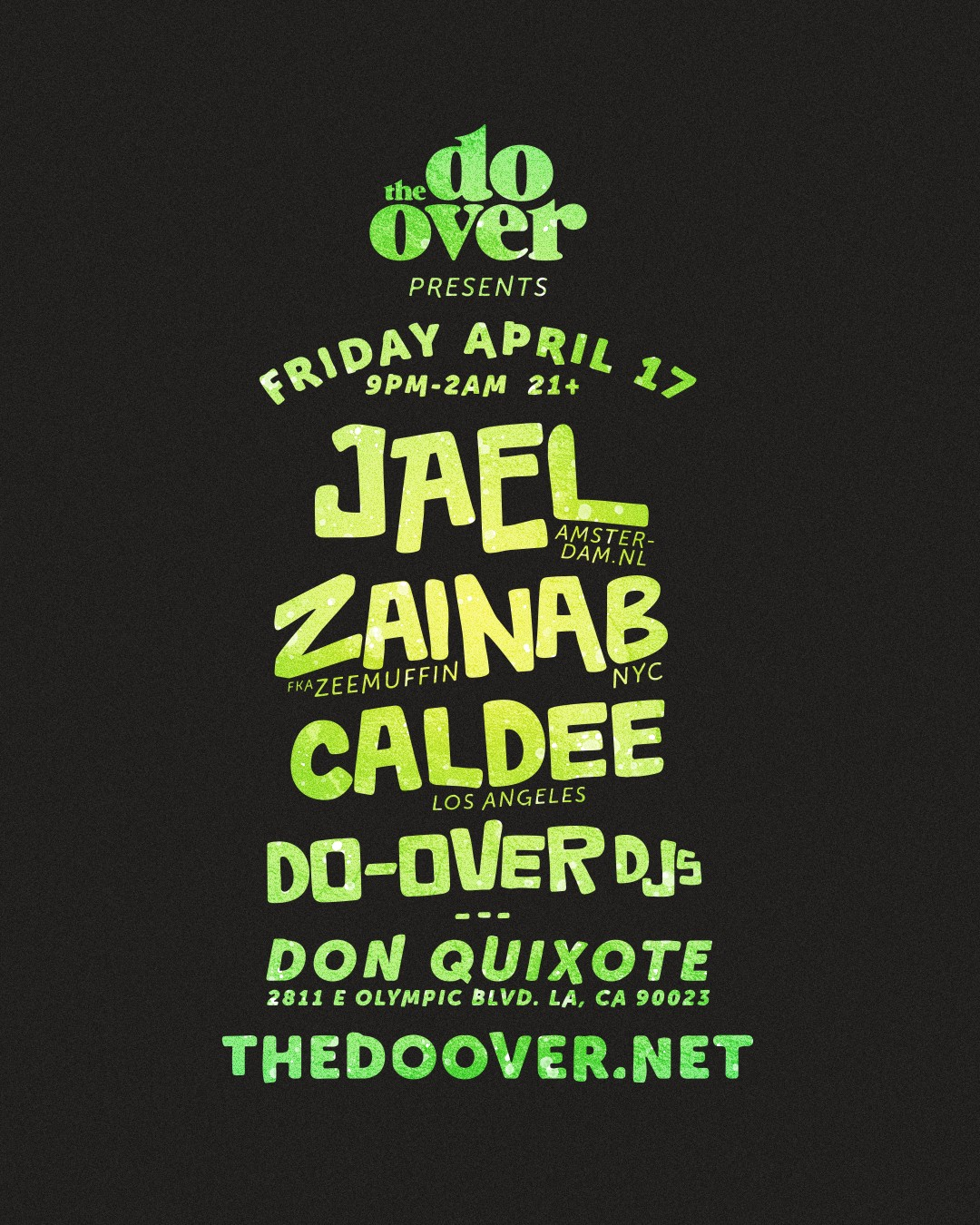 Deets: On Friday, April 17, The Do-Over brings a special night of global sounds to Don Quixote in Los Angeles featuring JAEL (Amsterdam) alongside ZAINAB (fka ZEEMUFFIN), CALDEE, and The Do-Over DJs.
