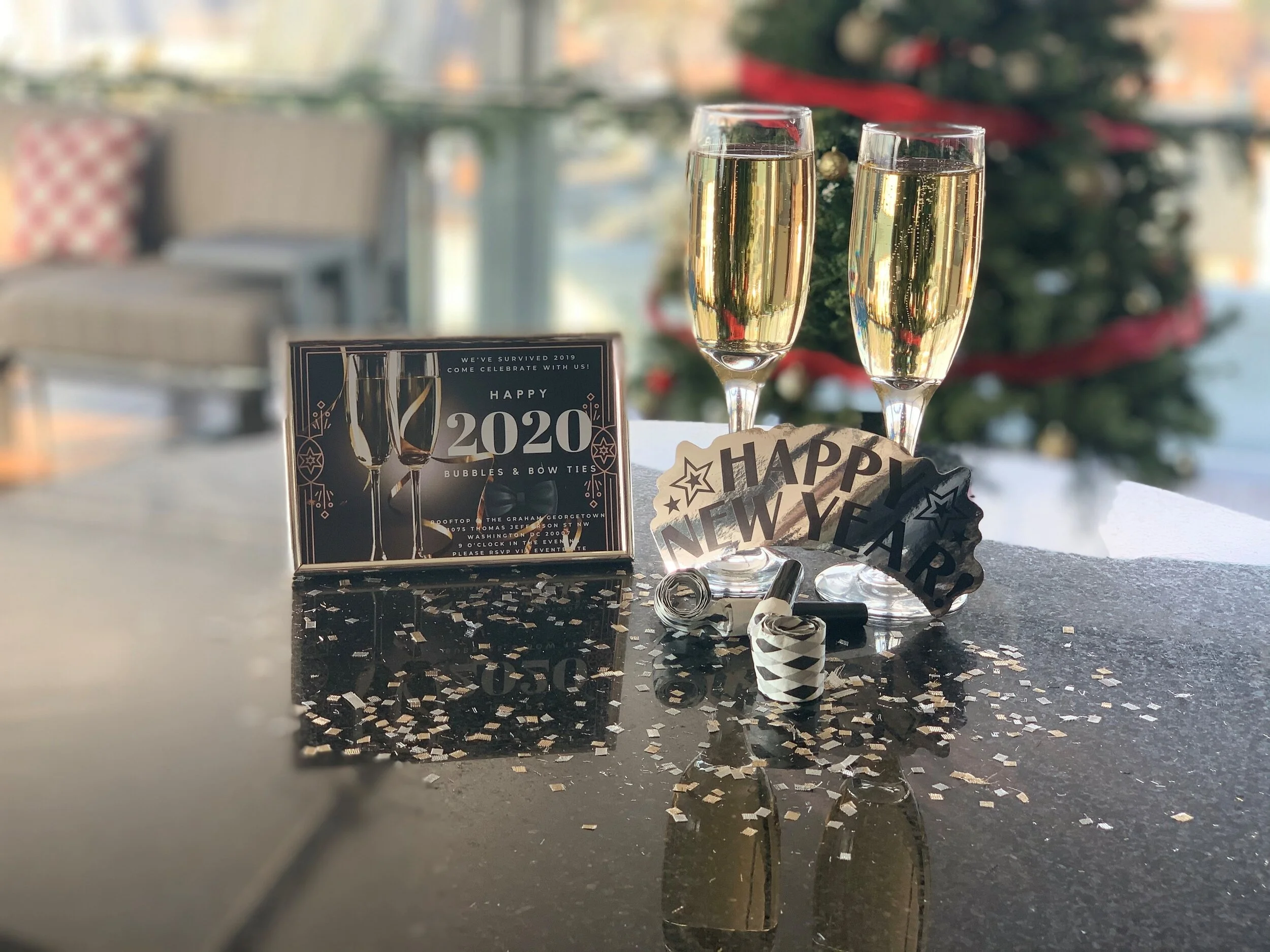 Deets: Join us on the Rooftop and welcome 2020 in style at our Bubbles and Bow Ties Party! Our intimate event is limited to 120 revelers. Come dressed to impress in semi formal/cocktail attire. Bow ties are highly encouraged. The Rooftop is tented and heated with spectacular views. Our New Years Eve package includes a 4 hour open bar, satellite Bubbles Bar, party favors, 3 hours of unlimited themed food stations and passed appetizers. Big Screen countdown and a champagne toast at midnight. DJ Banks will keep the energy up from 9pm until 1:30am, with a mix of hip-hop, top 40, dance & house.