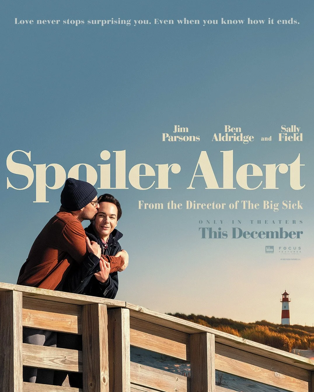 Deets:  Jim Parsons, Ben Aldridge, and Sally Field star in #SpoilerAlert, from the director of The Big Sick. Only In theaters December 2. Based on Michael Ausiello’s best-selling memoir “Spoiler Alert: The Hero Dies,” the film is a heartwarming, funny and life-affirming story of how Michael and Kit’s relationship is transformed and deepened when one of them falls ill.