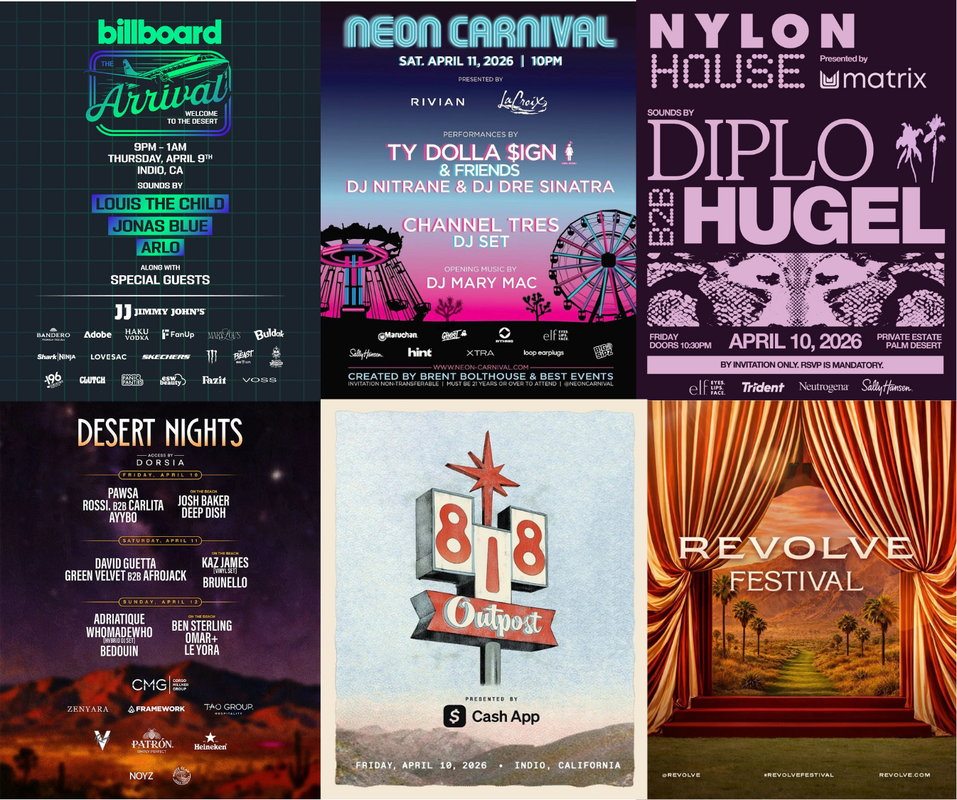 🎡 Get ready to dive into the desert- Coachella 2026 is officially here, and we’ve curated the ultimate list of the activations and parties you can’t miss! From high-energy festival hubs like the Aperol Day Club (featuring beauty stations and tooth gems) and the legendary Heineken House, to the season's most coveted, invite-only celebrations like the 15th anniversary of Neon Carnival with Ty Dolla $ign, the fashion-forward REVOLVE Festival, and the ultra-exclusive late-night sets at Desert Nights featuring David Guetta and Anyma at the Zenyara estate, this weekend is packed with "you had to be there" moments. Don't miss a beat- follow us on Instagram for live scenes from inside the biggest parties! See you there! 😉