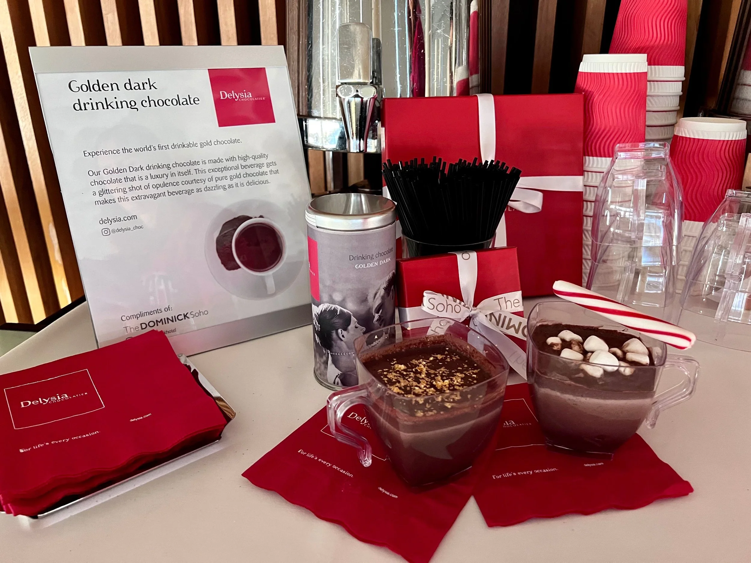 Deets: For a limited time in November and December, The Dominick Hotel in SoHo will offer complimentary rare gold drinking chocolate in their lobby, provided by Delysia Chocolatier.
