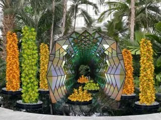 Orchid towers of orange, yellow, and green, undulating fields of white, and overhead plumes of purple, together with artistic embellishments and a kaleidoscopic tunnel of lights, will enthrall visitors.
