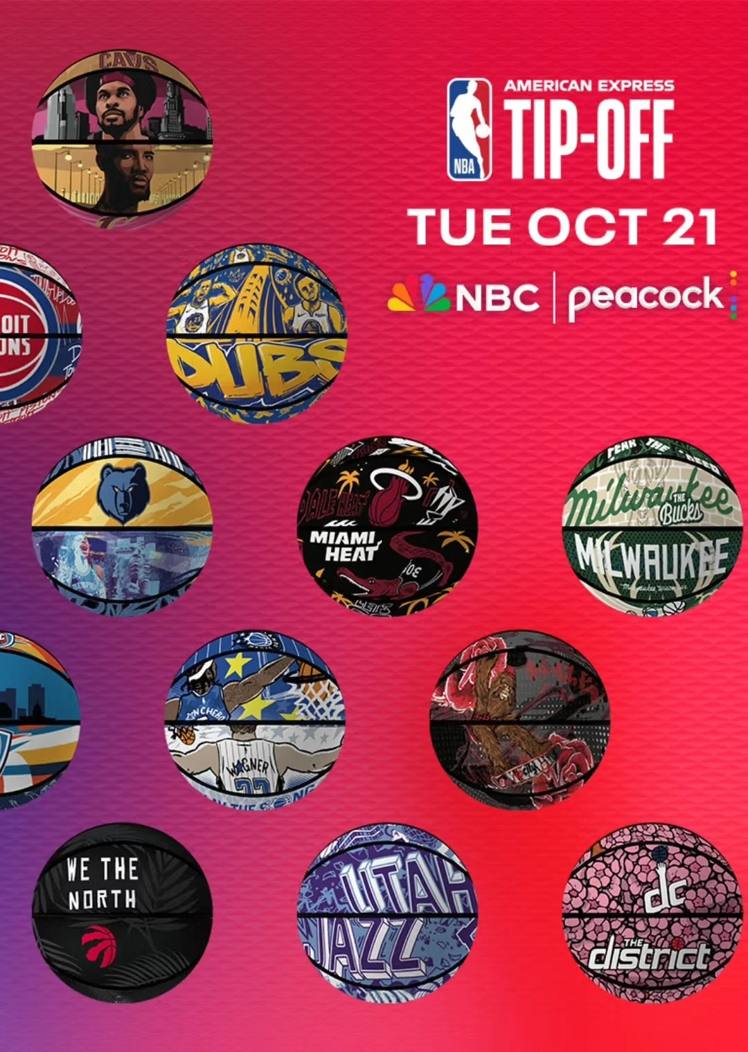 Step onto a custom LED basketball half-court, explore 30 one-of-a-kind basketball artworks inspired by every NBA team, and take part in daily fan experiences, photo ops, and appearances by NBCUniversal personalities and NBA legends—including Maria Taylor, Michael Bublé, John Starks, Ron Harper, Joakim Noah, Jason Richardson, and more.