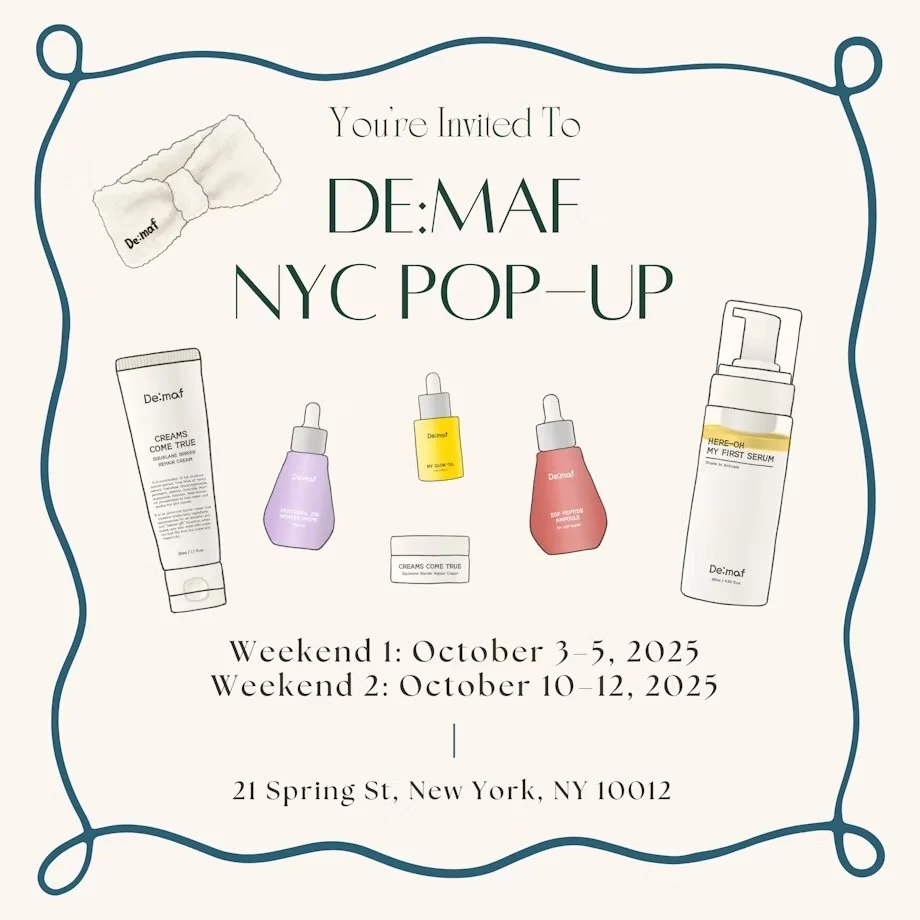 Deets: De:maf is back in New York! This time with our exclusive pop-up store in New York! Meet the full De:maf collection in person and get a personalized skin consultation just for you.
