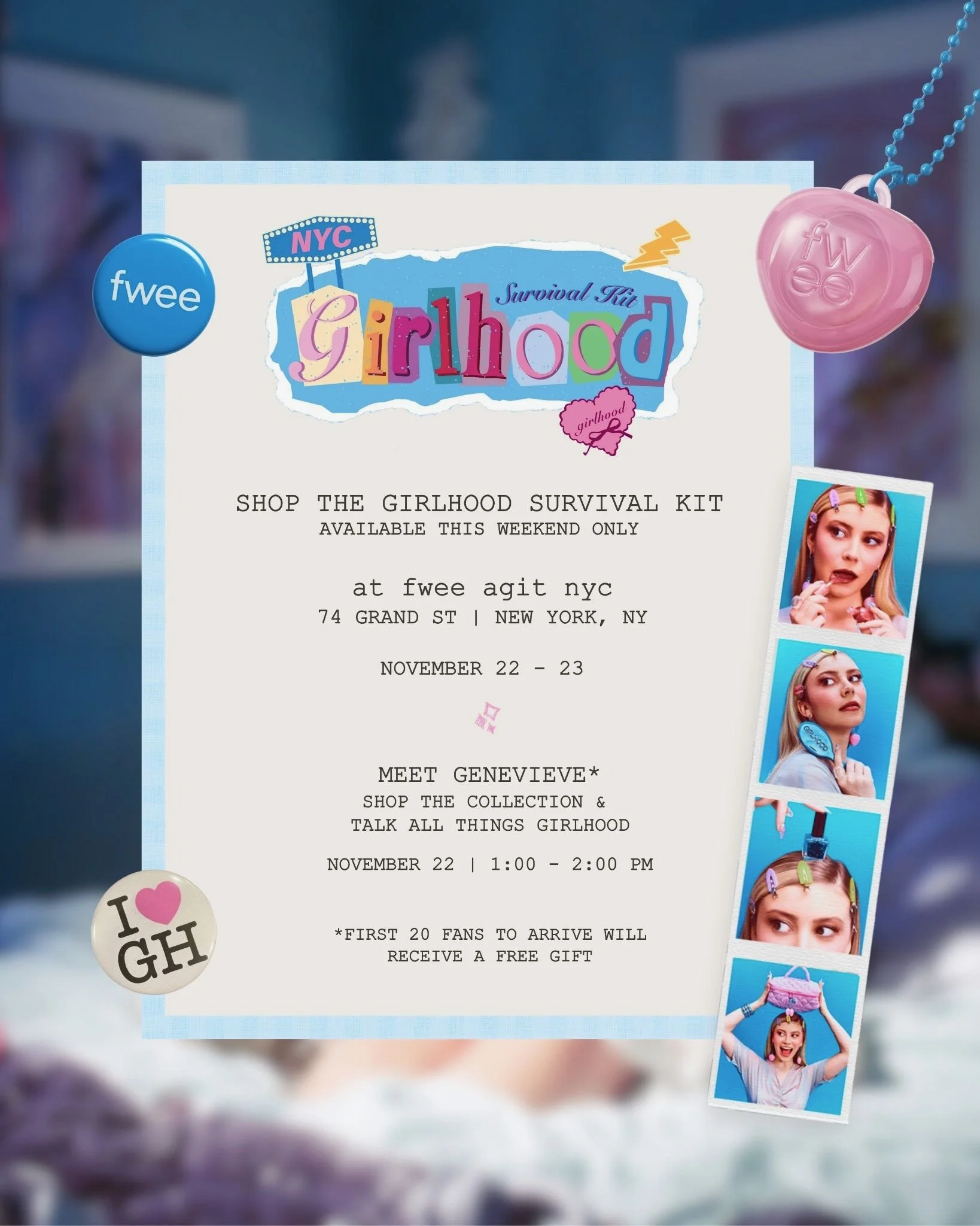 The first 20 guests to arrive will receive a free gift!, and between 1pm - 2pm, guests can meet and greet Genevieve Hannelius and talk about all things girlhood!