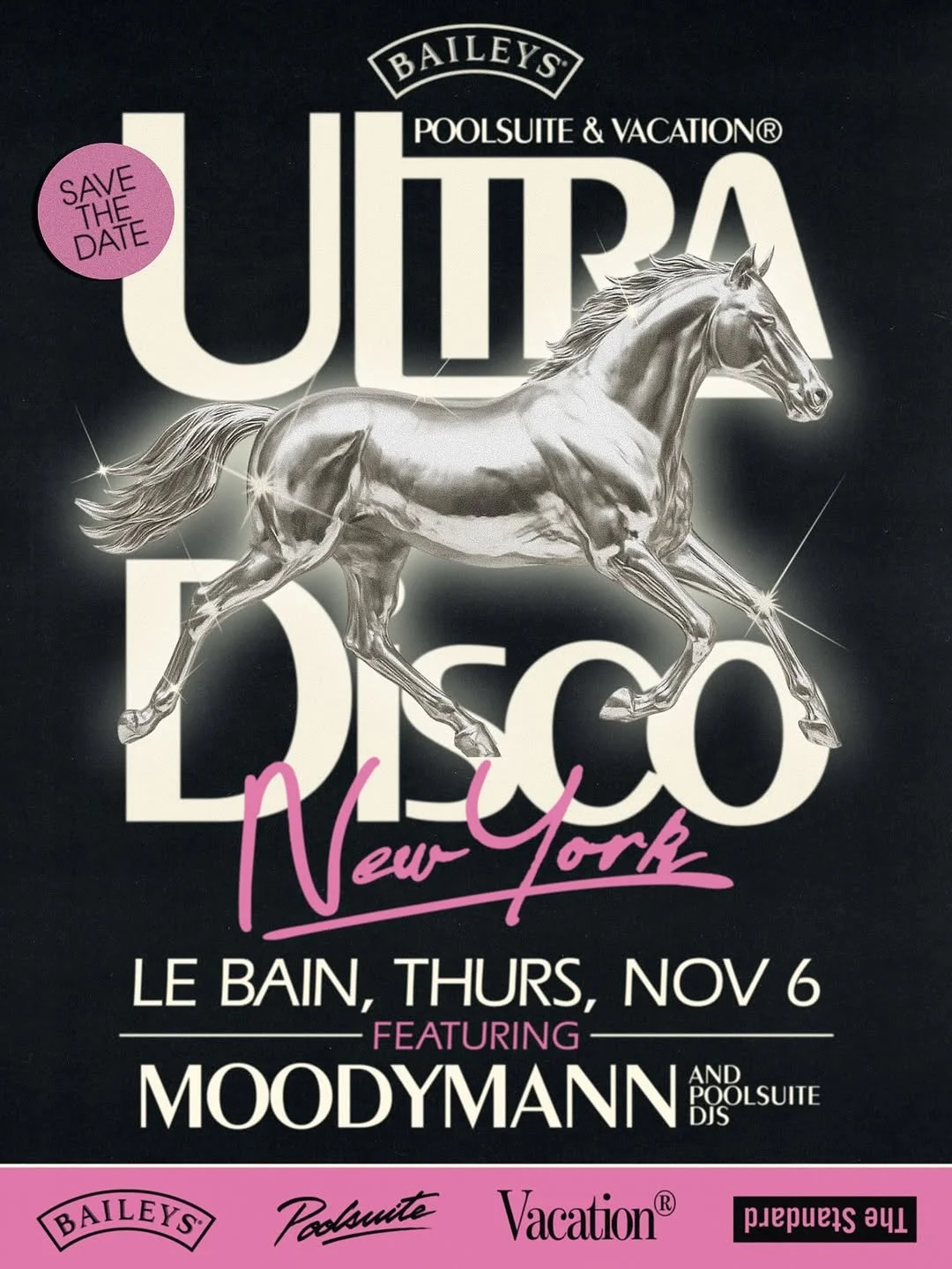 Join us for a night of disco-fueled reverie and Baileys specialty beverages, headlined by 90s Detroit house legend Moodymann alongside a variety of Poolsuite disc jockeys. The soirée unfolds at Le Bain, the iconic penthouse discothèque perched atop The Standard, High Line.