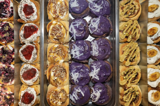 The new Sunday Morning bakery will serve the signature made‑fresh gooey cinnamon rolls daily, offering 10 different cinnamon rolls ($7 - $8.50) on weekdays, 12 on weekends, plus a range of coffee beverages – till they sell out. The cinnamon rolls, made in the classic American style: soft and pillowy with a save-the-center-for-last texture, are served warm.